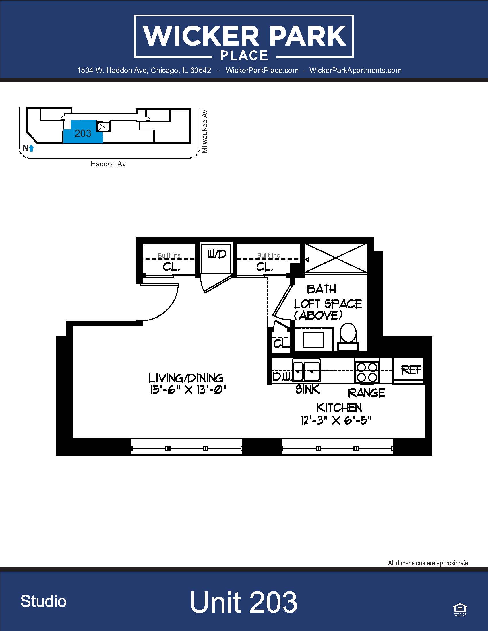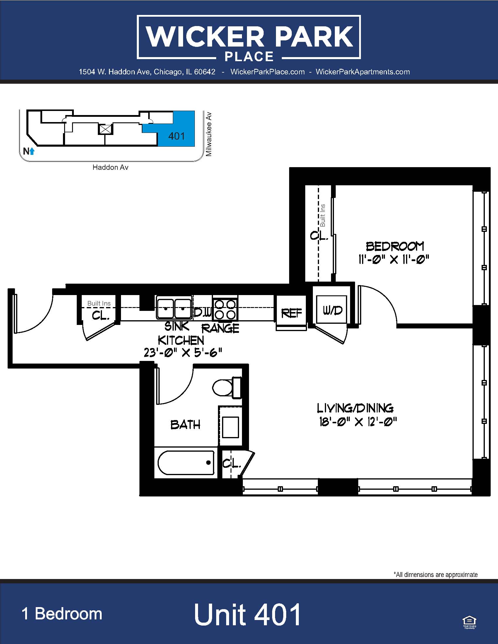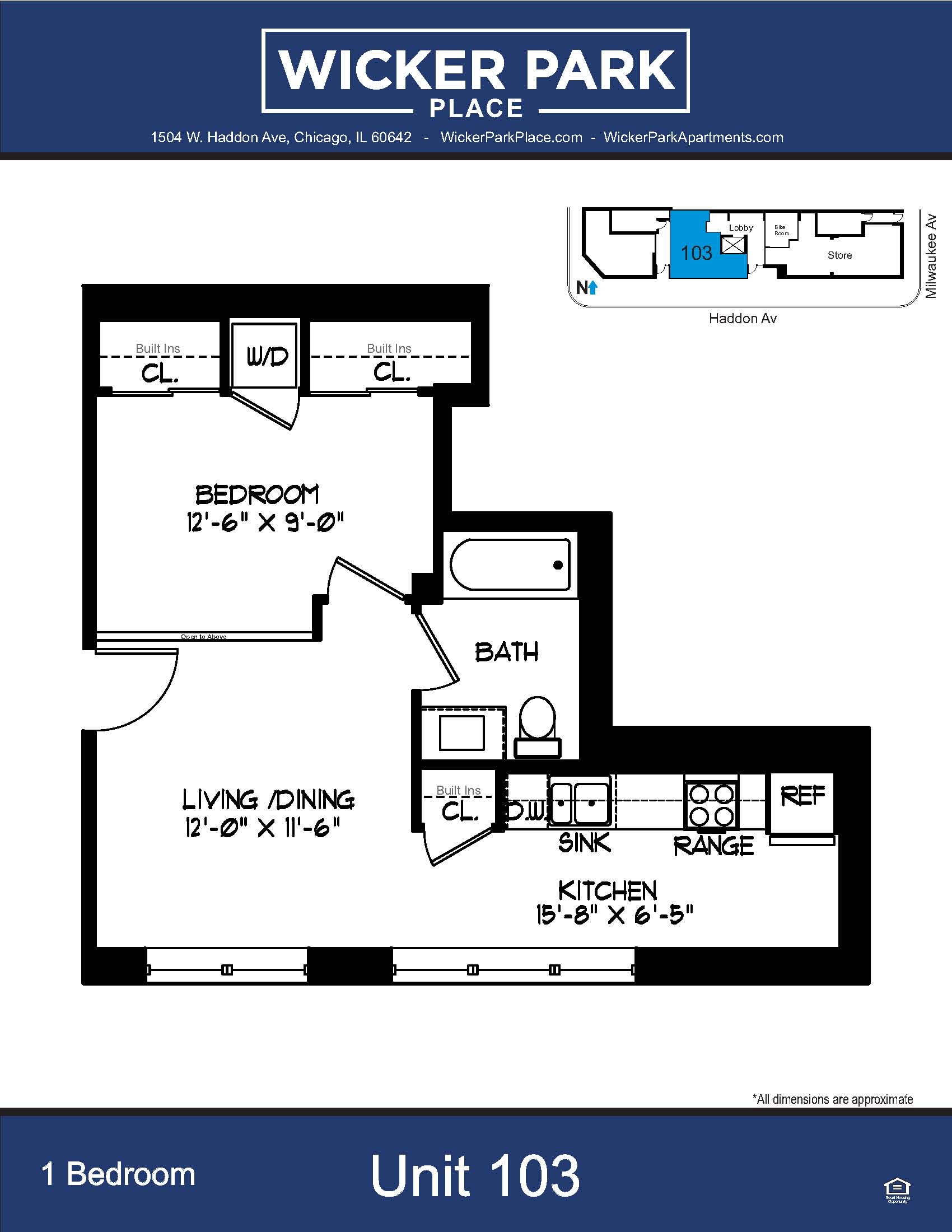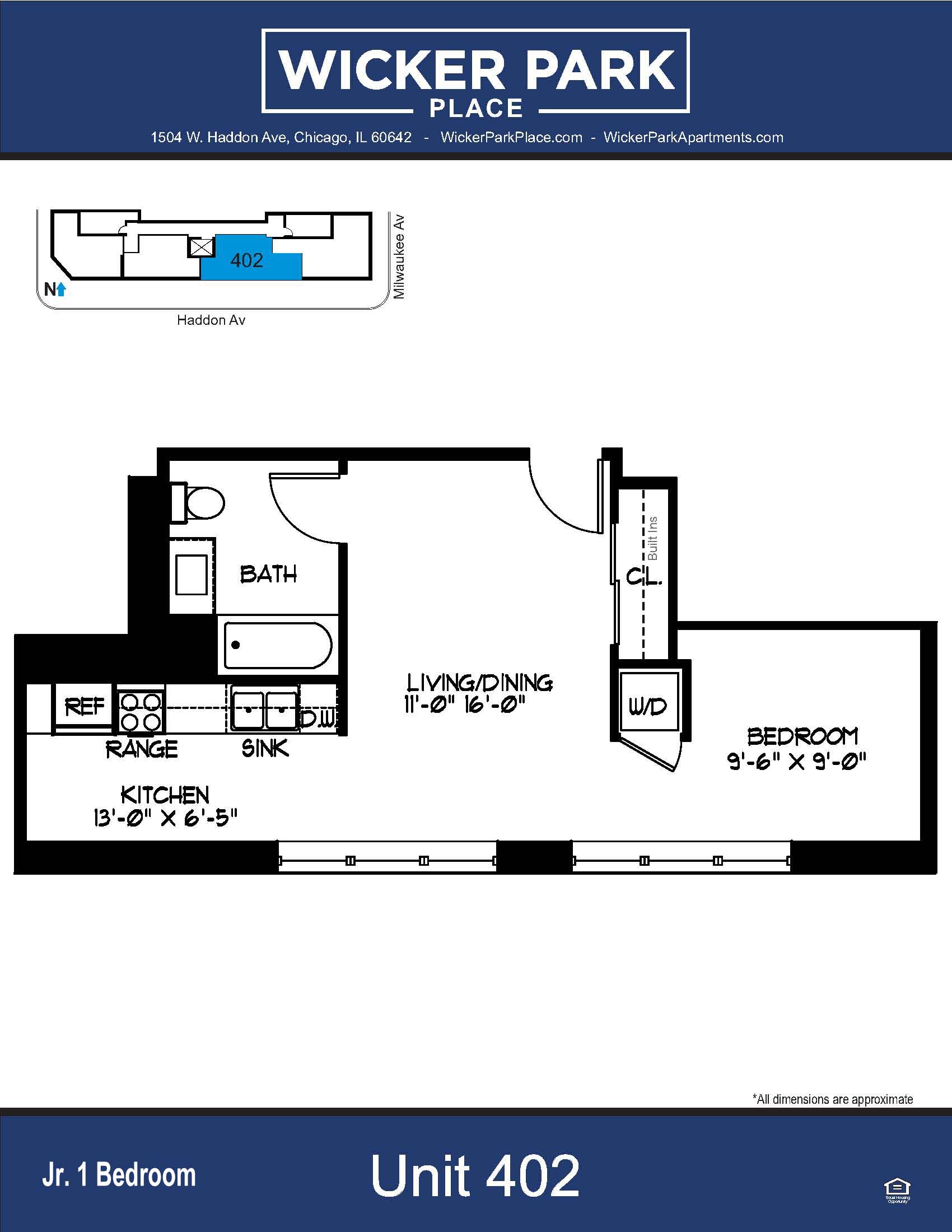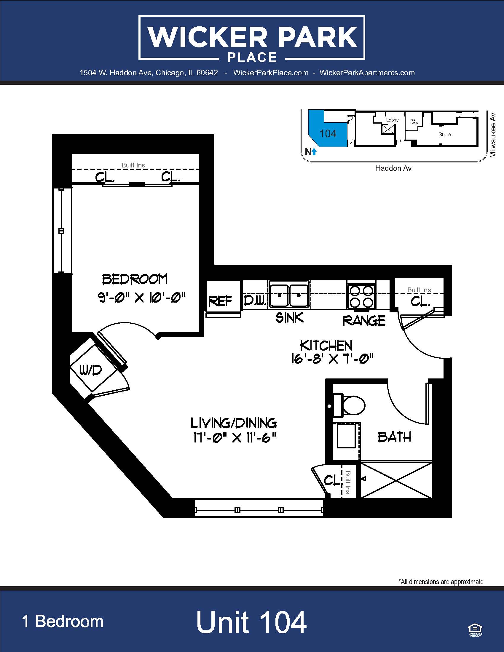Steps away from the Blue Line at the convergence of Ashland, Division & Milwaukee. These 14 bright, awe inspiring Studio, Jr. One Bedroom and One-bedroom units feature 12 foot ceilings and oversize windows. Sleek modern design aesthetics, real hardwood floors, High speed internet included. Huge shared roof deck, secured entry & package area, bike storage and storage lockers for all units make these apartments extraordinary.
